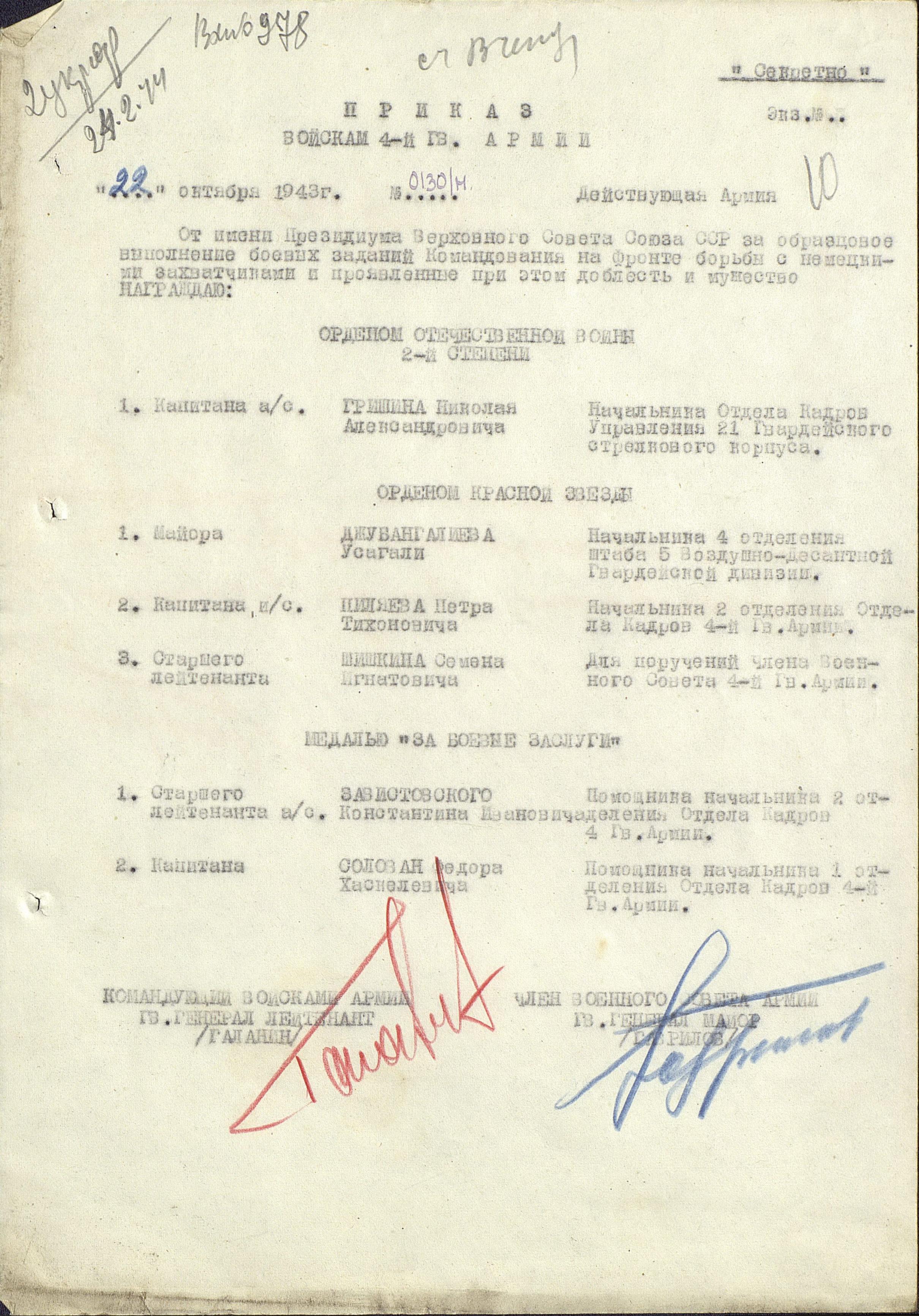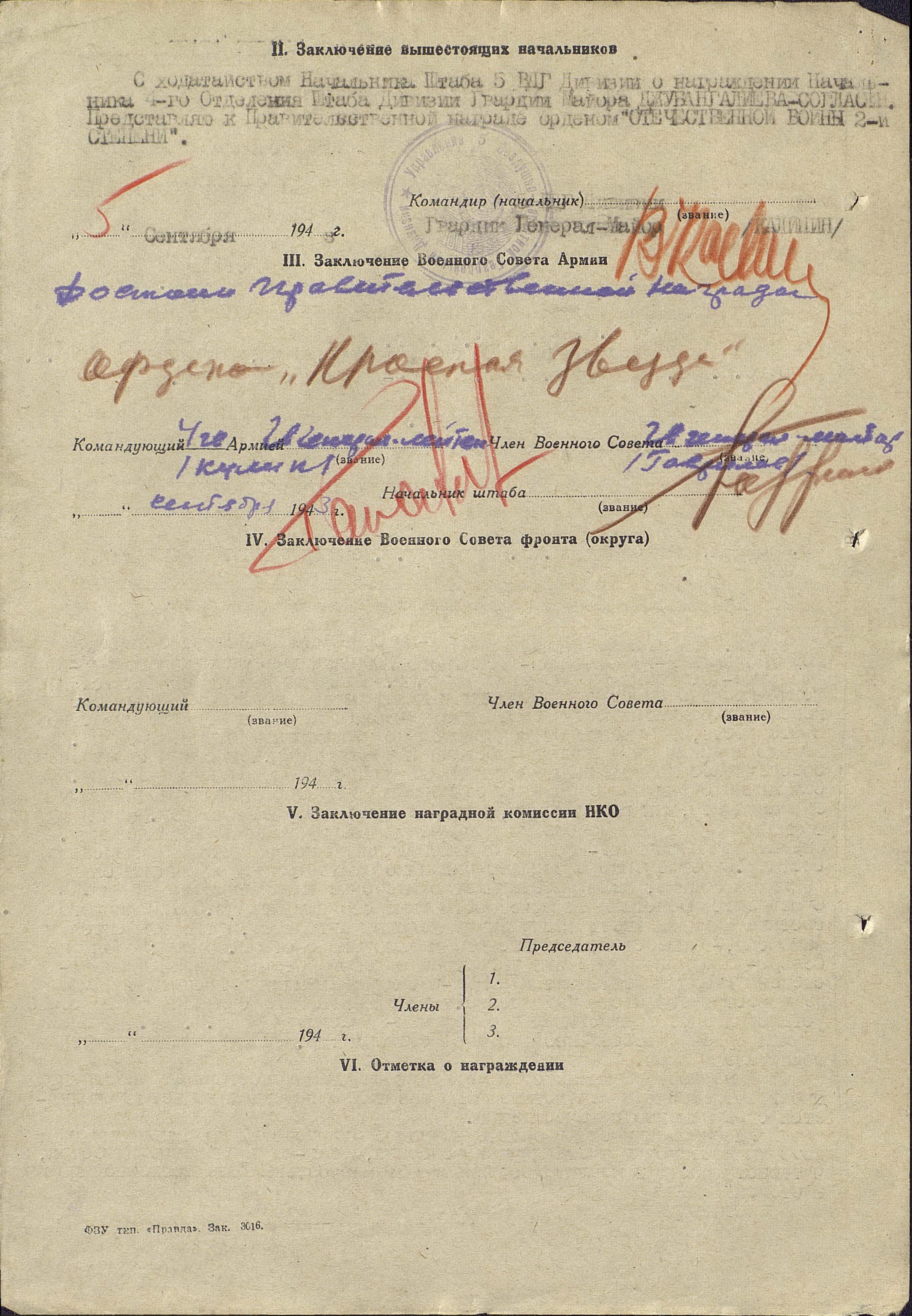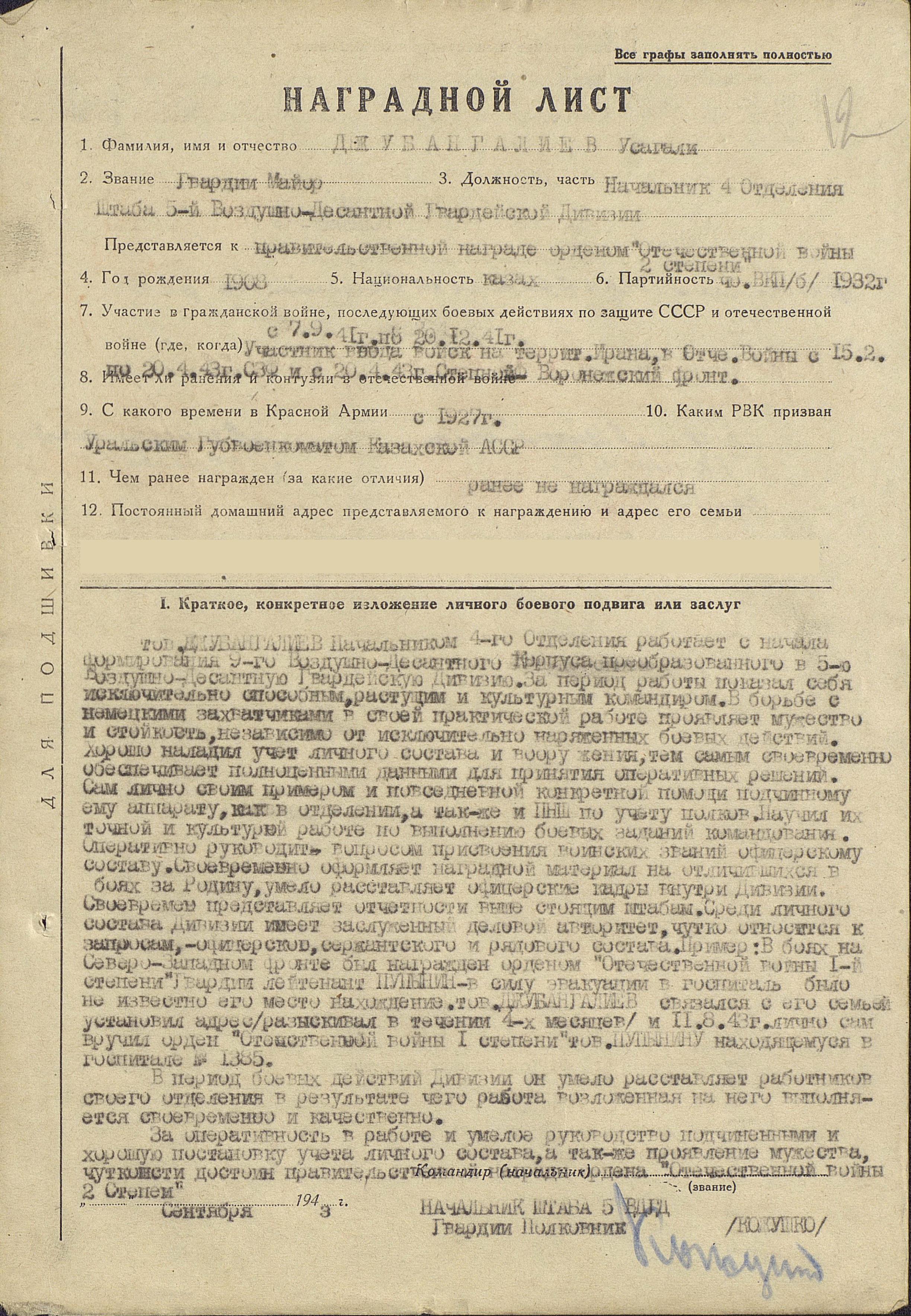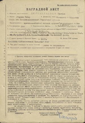 нач-к 4-го отделения Штаба 9-го Воздушно-десантного корпуса, затем - 5-й Гв. воздушно-десантной дивизии (=1943=);